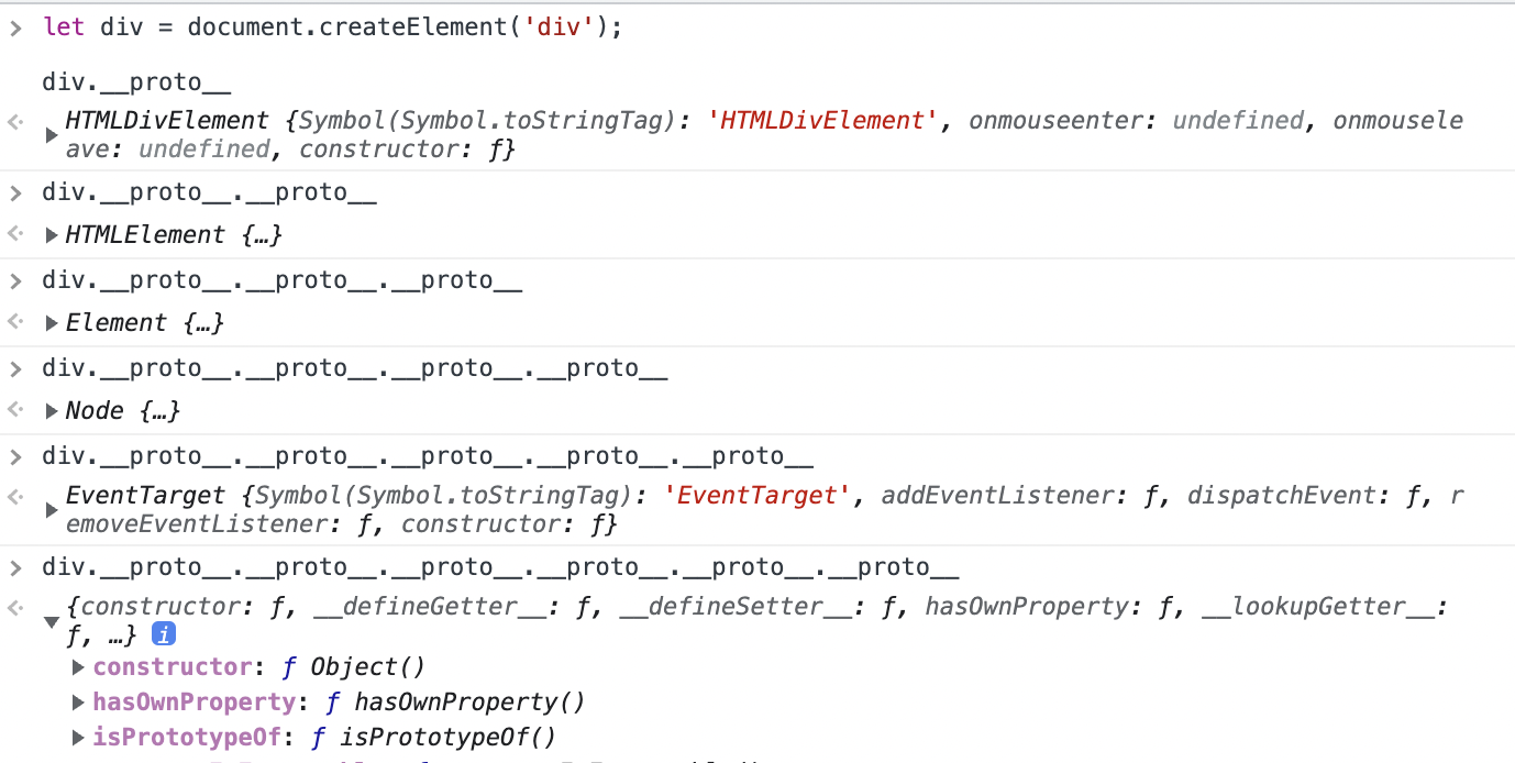 어떠한 객체에서 속성과 메소드 접근 시 원하는 것이 그 객체에 없다면, 객체의 __proto__ 가 가리키는 링크를 따라 부모역할을 하는 객체의 속성과 메소드를 차례로 확인한다. 이렇게 점차 위로 검색해 올라가는 것이 프로토타입 체인이다.