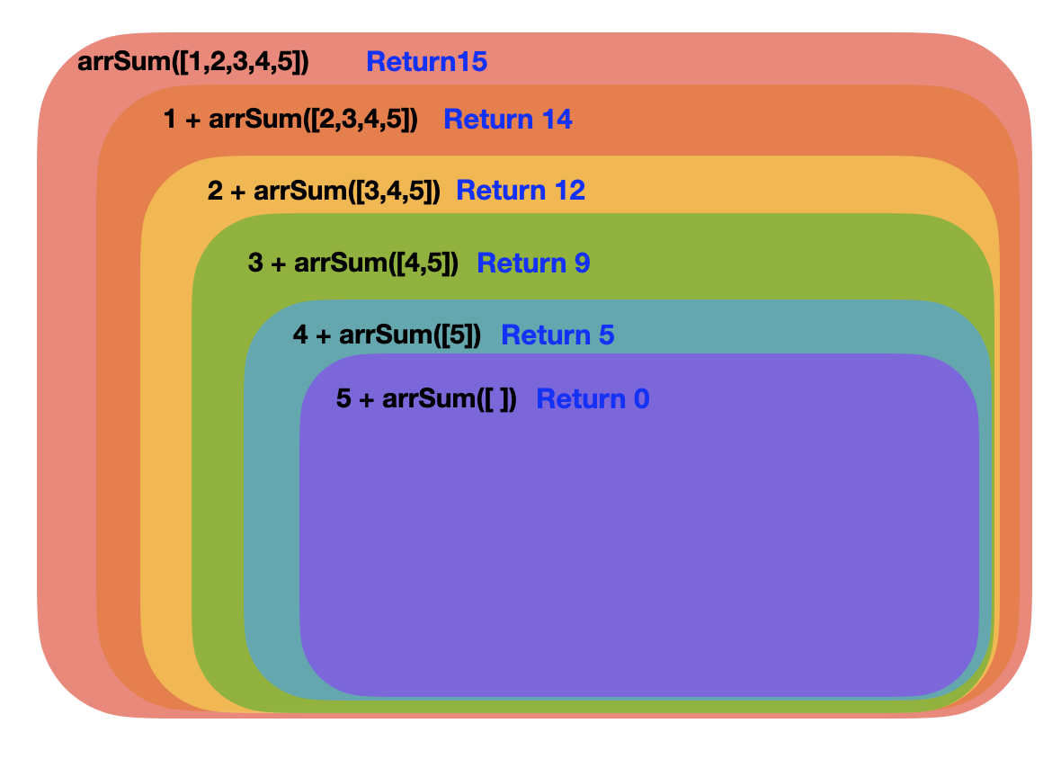 arrSum([1,2,3,4,5]) === 1 + arrSum([2,3,4,5]) === 1 + 14 === 15;